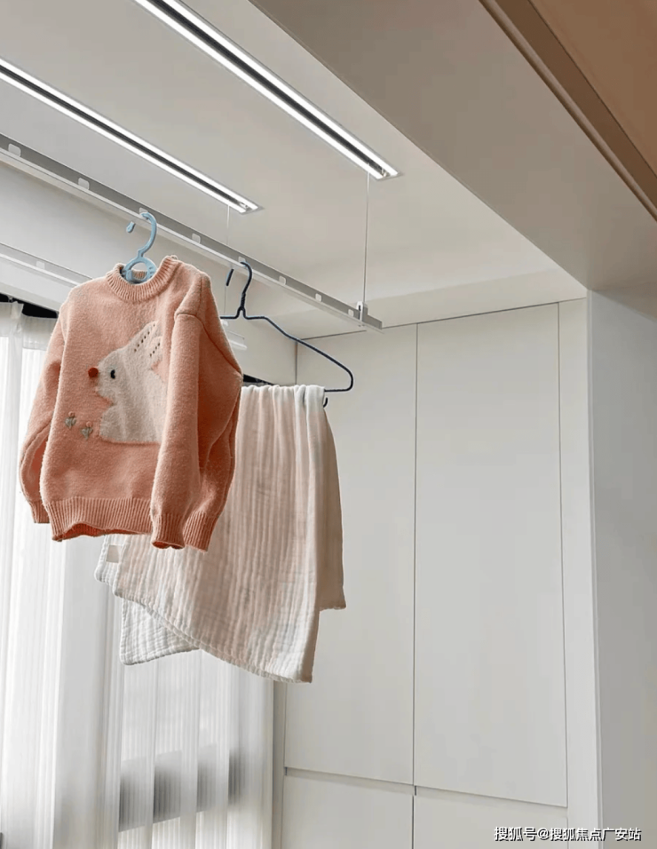 极简风的内嵌晾衣架,嵌入吊顶后几乎“隐形”,很多人一眼就爱上了。