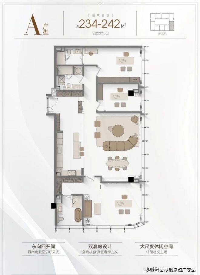 5️⃣户型优势:4.2米层高,全落地窗设计,多套房设计满足三代同堂