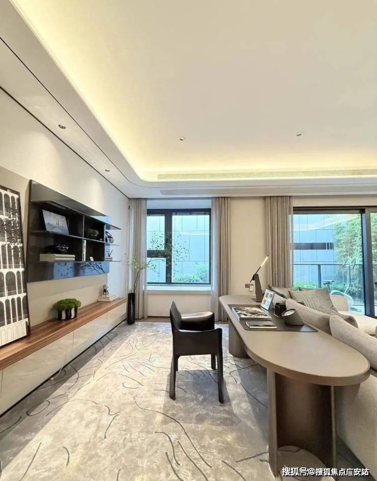 室内设计,秉承摩登东方的理念,设计以人、生活为中心,从空间本体和情感层面都回归生活,270度环幕采光,开放式会客厅设计,兼具尺度感与功能性。