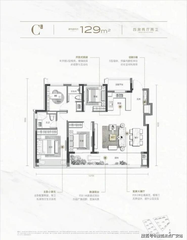 四开间约12.1米大尺度面宽,
