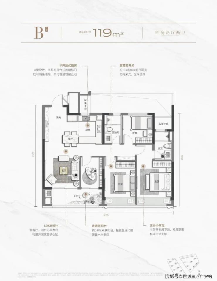以建面约119㎡户型为例,