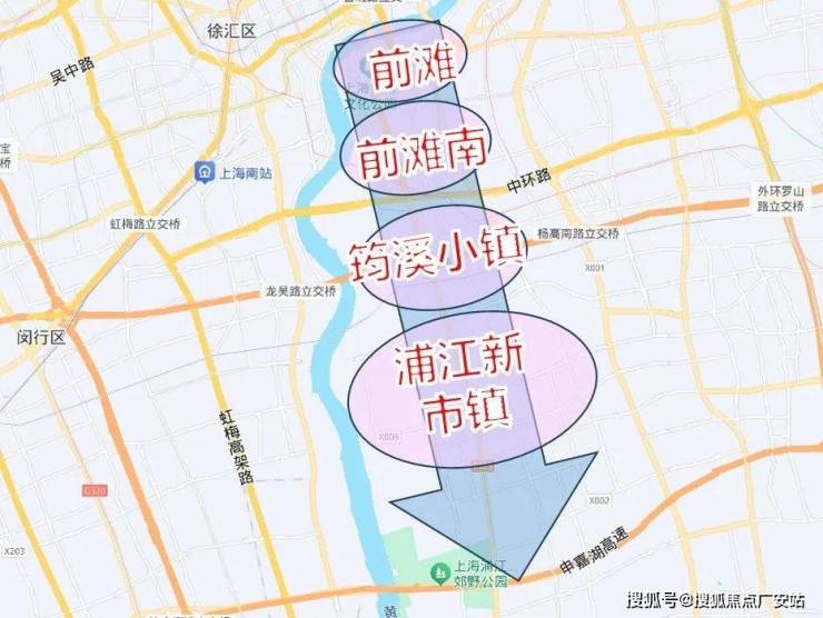 项目位于于前滩南浦锦板块,距离8号线沈杜公路站直线距离约200米,西边紧贴着浦江郊野公园,东侧就是未来的TOD综合体。