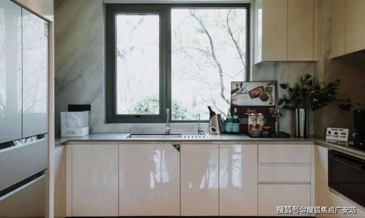 厨房设计特别贴心,U型布局让洗菜、切菜、炒菜动线顺滑到飞起,家里来客人时也不用担心油烟乱窜。
