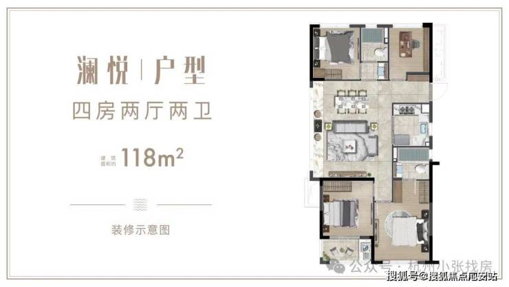 118㎡四房两厅两卫全明户型,客餐厅一体化设计,大横厅面宽达到了约6m,还自带飘窗,未来喝茶阅读、观景放松,好不惬意。