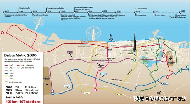 楼下即是地铁红线站点与未来的地铁黄线站点,直连 Palm Jumeirah 与 Dubai Islands;10 分钟生活圈覆盖 DIFC、商务港、City Walk 等高端片区