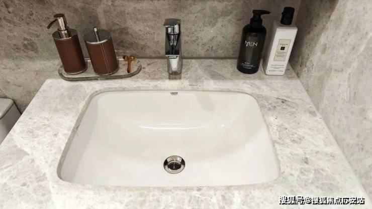 卫浴空间同样精彩,采用高仪的台盆、龙头、智能马桶、淋浴花洒等,主卫创新定制“美妆冰箱”,满足业主对美妆、护肤用品冷藏的需求,足见开发商对成本的舍得。