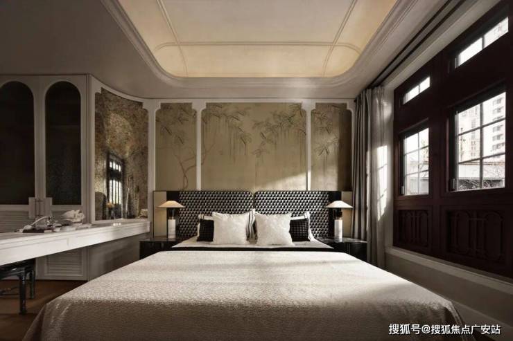 双主卧套房设计尊重并照顾每一位家庭成员的私人定制需求,延续装饰艺术美学,邂逅一片春和景明。