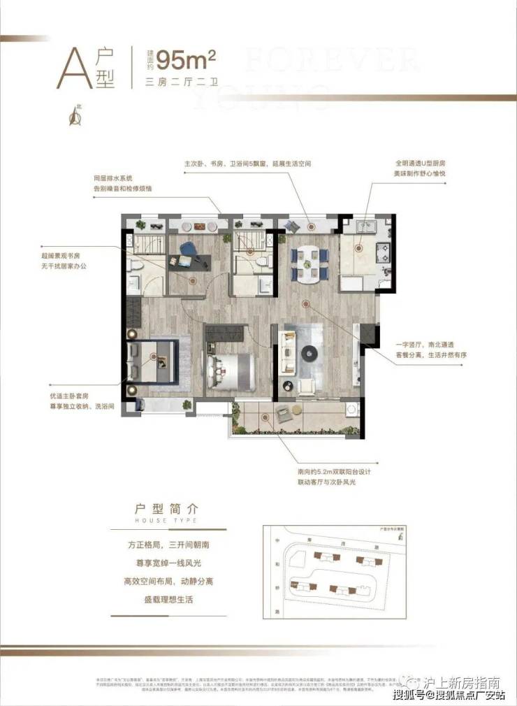 建面约95㎡3房2厅2卫
