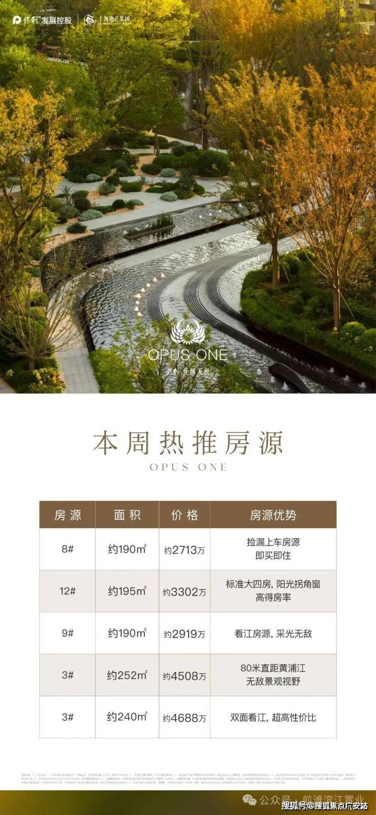 即将交付的实景准现房,主力面积是174㎡3房-195㎡4房,以及391㎡顶楼复式,总价约2700万起!另外特殊户型建面约500㎡江景大平层限时开放,总价约7500万~1.4亿!一层一户,双S湾270°全景视野,35米江景面宽,样板间、实体楼预约可参观!