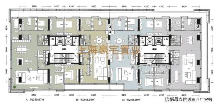 主力建面248-310㎡,空间户型可自由分割