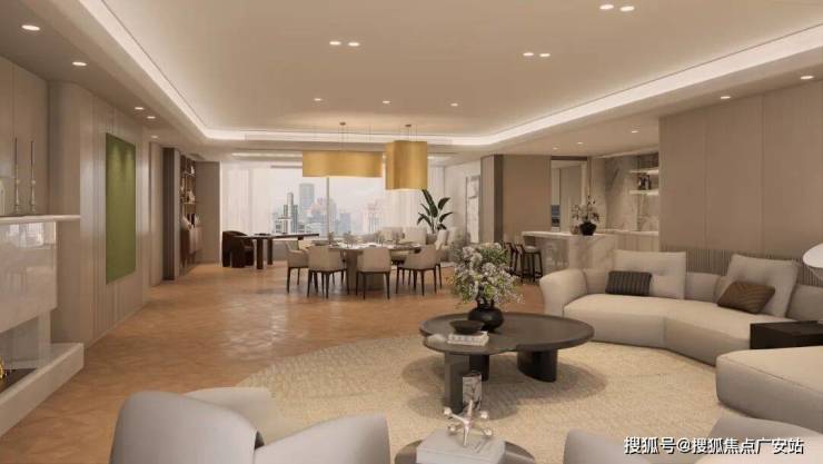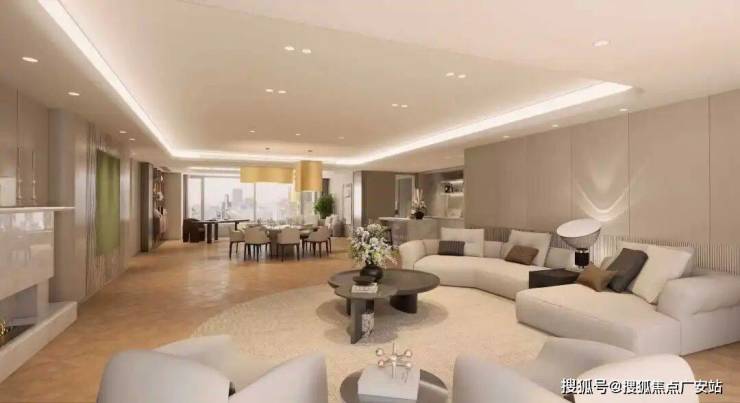 室内设计由CCD操刀,延续了上一批次约360㎡户型广受购房者青睐的现代简约艺术法式风格,且弧线成为空间核心元素,吊顶四周、部分墙面转角乃至内阳台均做弧形处理,为空间增添优雅流动感。