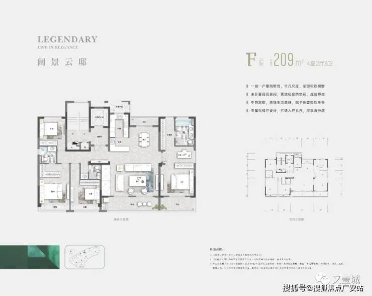 如果说189㎡级的四房,是达到了墅式标准的话,那这款建面约209㎡的整层大平层户型,就是改善的终极款了。