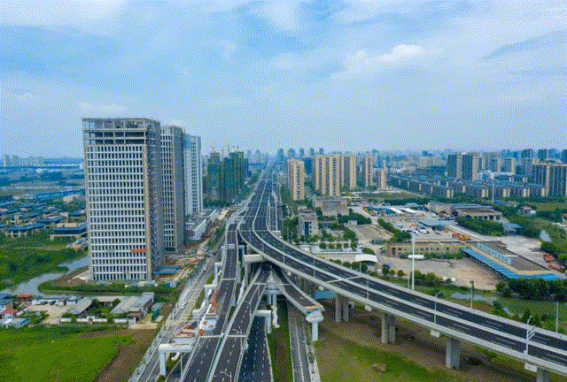 沪嘉城际(规划中)、内环快速路、有轨电车T2站点(规划中)、高速路口、周围道路的静谧。