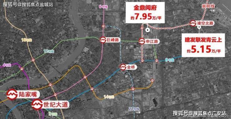 从「建发联发青云上」地块,经在建的轨交崇明线,2站即可到达金鼎天地!轨交2站到金鼎,新房价格下降近3万/㎡;曹路已经有地铁9号线运营中。值得一提的是,作为上海东西轨交的交通动脉之一,地铁9号线的沿线商圈能级非常高,可以到达金桥、陆家嘴、徐家汇、漕河泾等科创产业高地。而在建的轨交崇明线则让曹路进一步高效嵌入金桥及浦东地区的轨交网络。
