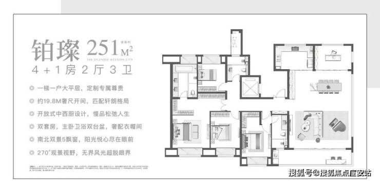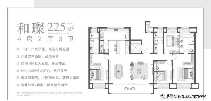 灿若银河的人生,值得盛景犒赏。 和光璀璨建面约251㎡传世藏品,一梯一户大平层尊属定制, 臻于稀缺,贵乎纯粹。以超越想象的峯层视界,重塑城市望族的顶豪生活逻辑。