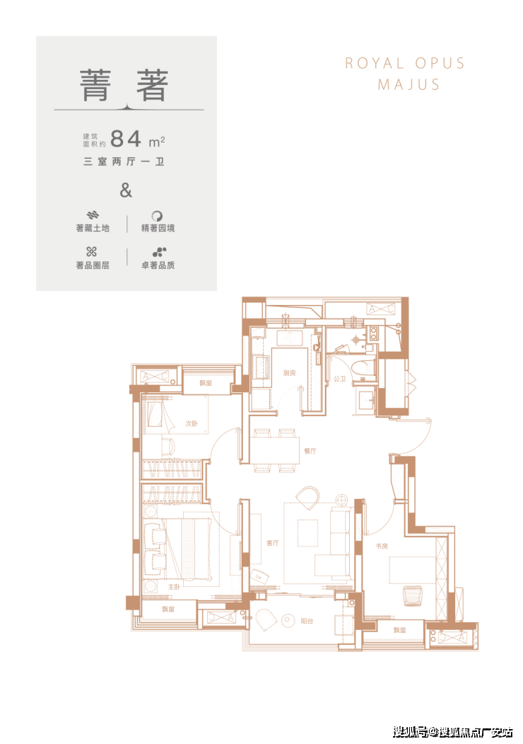 ▲全能三房,全明设计,双卫设计,通透舒适;南向三开间大面宽,更多阳光照拂,提升生活舒适感;独立书房布局,寓于静谧一角;风雅静逸,满足主人优雅品味