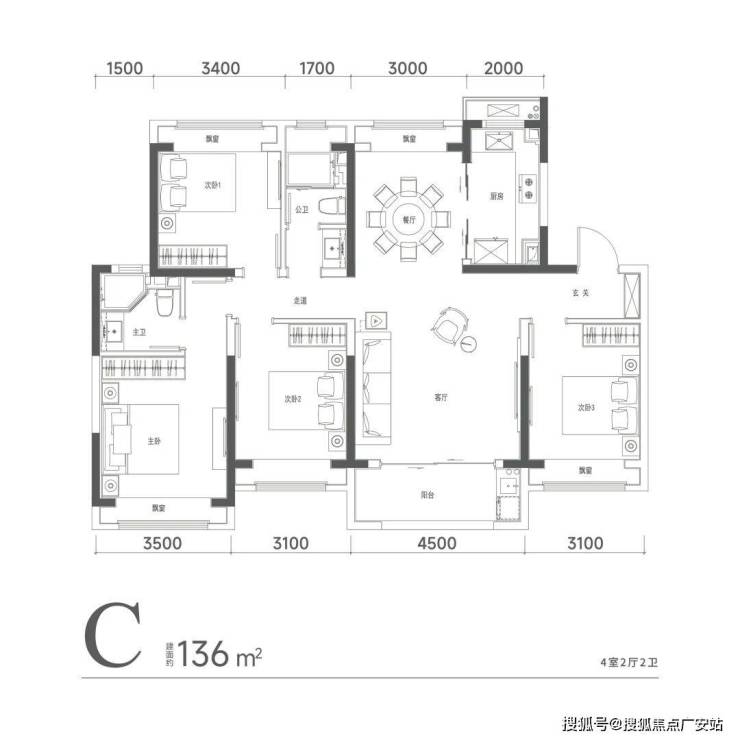 除了建面约166㎡,项目还有建面98-136㎡3-4房。