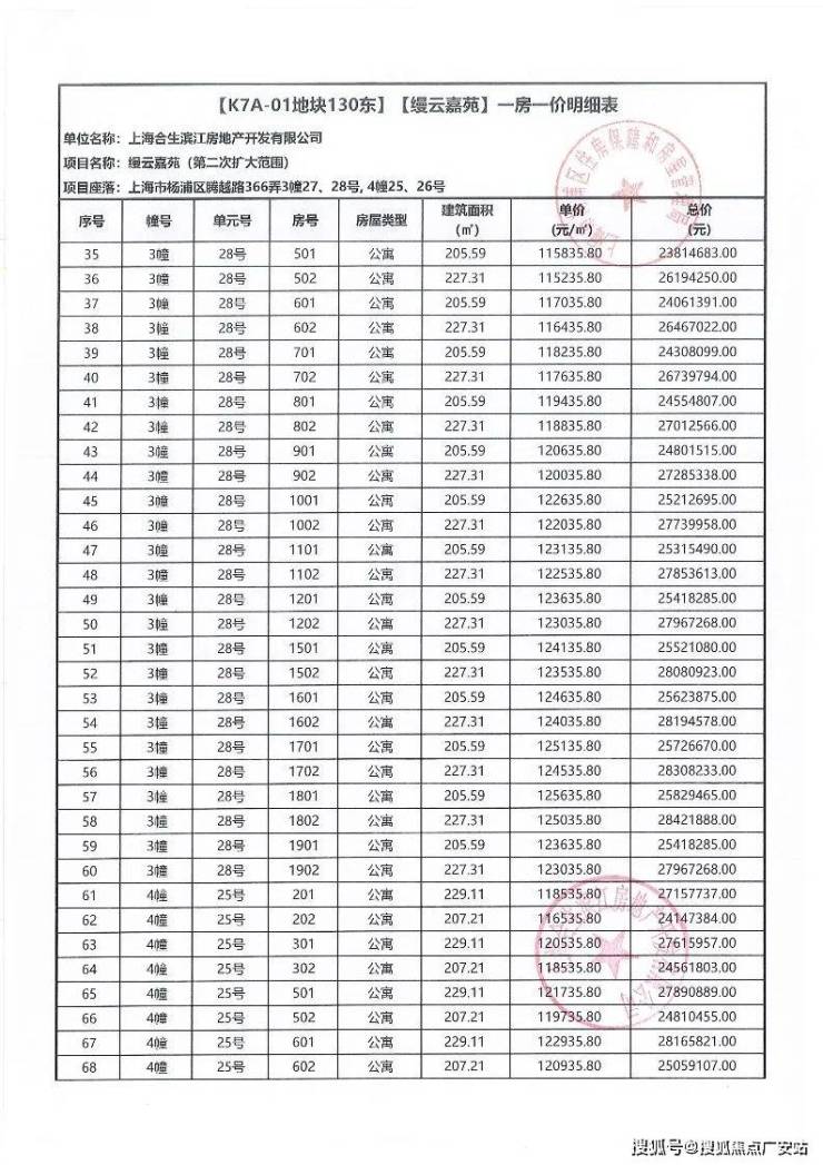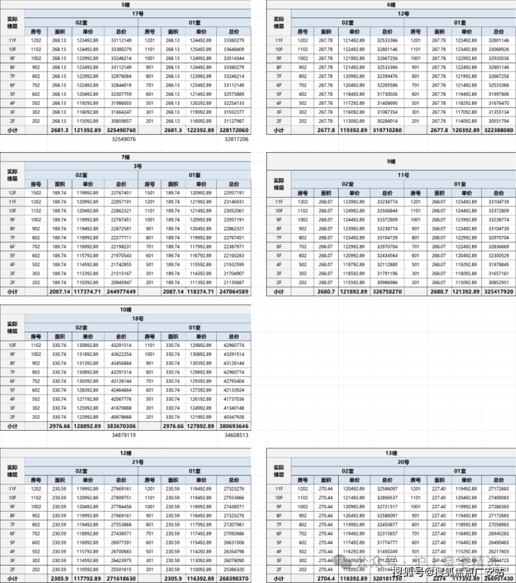 ▲ 一房一价汇总表