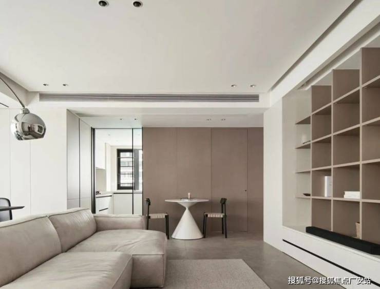 ▲ 客厅取消传统茶几的布局,腾出更多活动空间,选择模块沙发更加自由随性,也可以后期自己调整布局