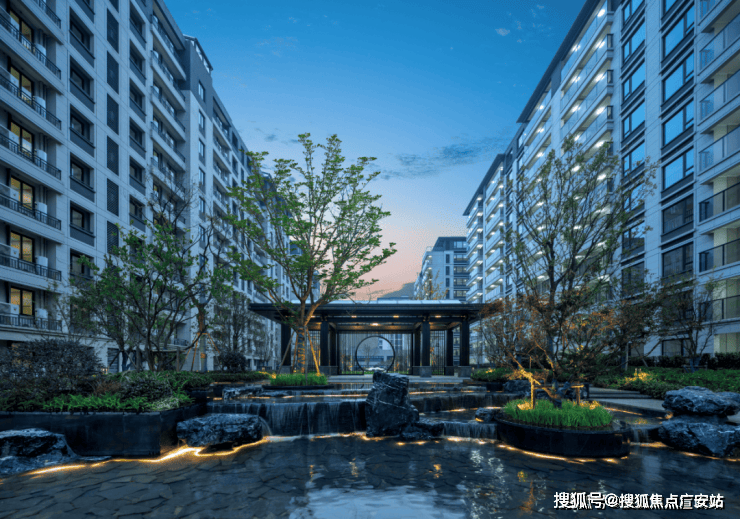 精致的凉亭叠水景观让整个园区中轴更显仪式感,中央草坪有两排银杏守护,镜面云朵雕塑灵动活泼,微风树影,一池潋滟久久荡漾心底,各类植被以及精致小品次第铺陈,多重进阶式景观营造出高雅气度。