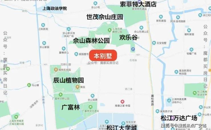 【周边文旅配套】佘山国家森林公园 广富林遗址公园 月湖雕塑公园 辰山植物园 欢乐谷 玛雅水上乐园 佘山高尔夫等。