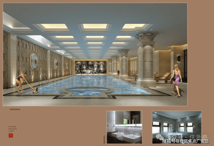 约250-380㎡私家室内泳池、约200㎡视频会晤空间,约220㎡套房式主卧,可容纳4-6个室内私家车位(以上均为建筑面积)