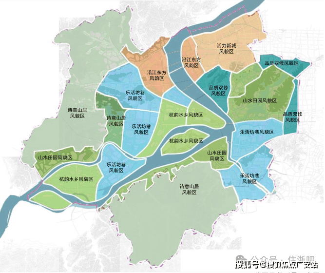 三江汇核心 + 拥江发展:钱塘江 / 富春江 / 浦阳江三江交汇处,湘湖 - 三江汇未来城市先行区,杭州 “南启” 战略核心