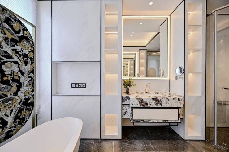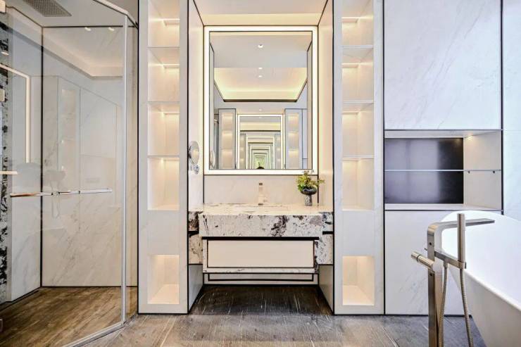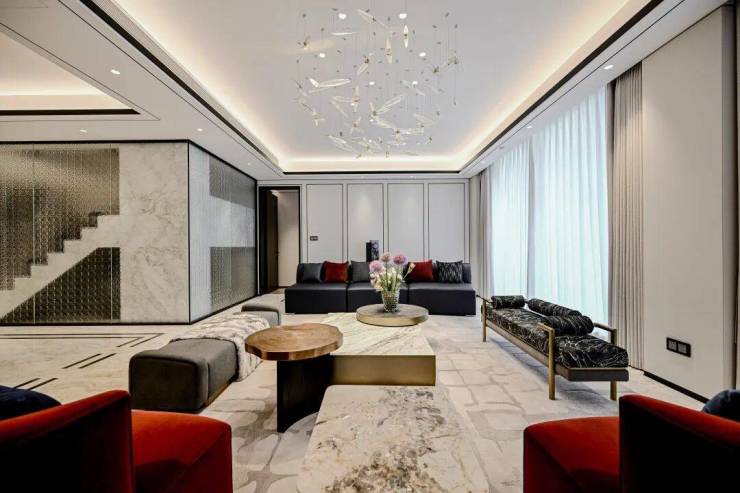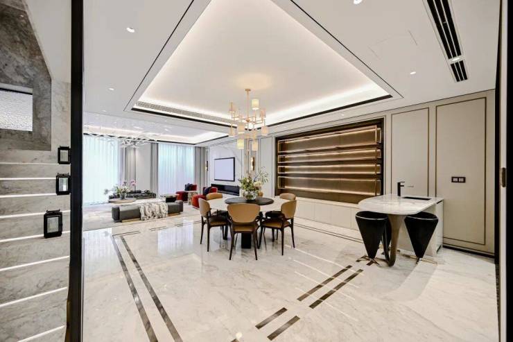 •设计:天华建筑事务所+梁志天SLD+贝尔高林三大国际团队操刀,外立面干挂石材+金属铝板,社区自带约2000㎡会所(恒温泳池、健身房、私宴厅)+约1000㎡泛会所。