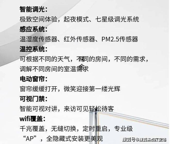 上海杨浦鑫湾甲邸售楼处电话:400-9939-964德国摩根·用科技创变生活智能调光:极致空间体验,起夜模式、七星级调光系统感应系统:温湿度传感器、红外传感器、PM2.5传感器温控系统:可根据不同的天气,不同的房间,不同的需求调解不同房间的室温需求电动窗帘:窗帘缓缓打开,微笑迎接第一缕光辉可视门禁:智能可视对讲,来访可见轻松待客wifi覆盖:千兆覆盖,无缝切换,定时重启,专业级“AP”,全隐藏式安装更美观