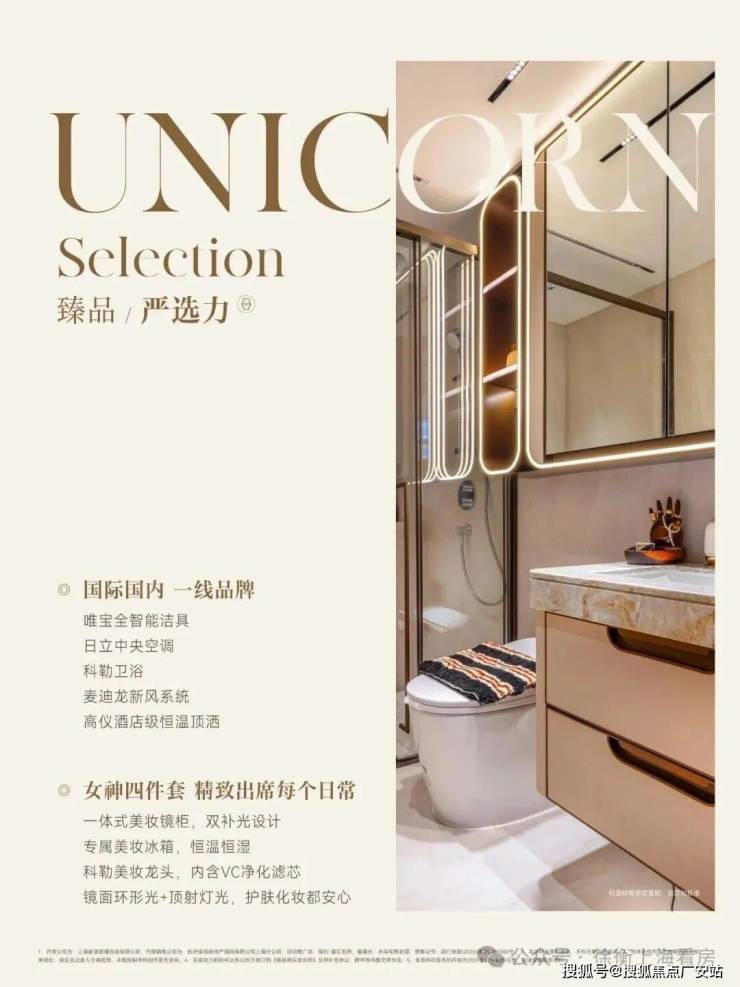 更于主卫空间首创“闵行美妆四件套”:科勒美妆龙头、美妆镜柜、美妆冰箱,辅以“顶+面双补光照明”,定制的科勒「玫瑰金色美妆龙头」,不仅出水方式可调整,还内置VC 净化器滤芯,让水质更软更健康。以专属的细节设计,礼遇居者。