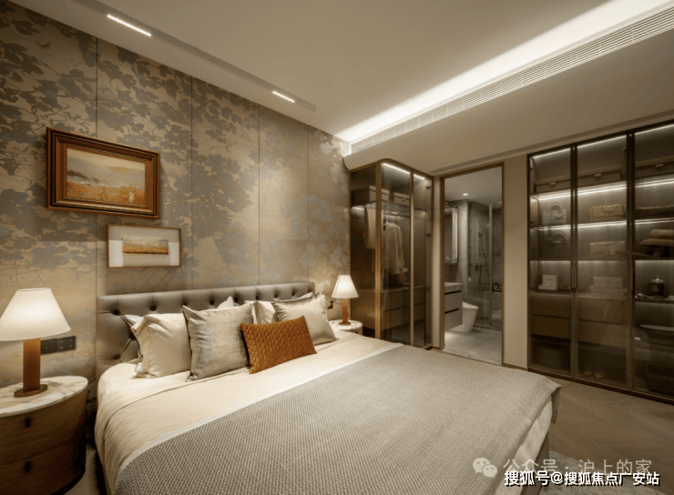 主卧套房奢享无柱转角飘窗,将自然光影引入室内,,四季更迭皆成风景。