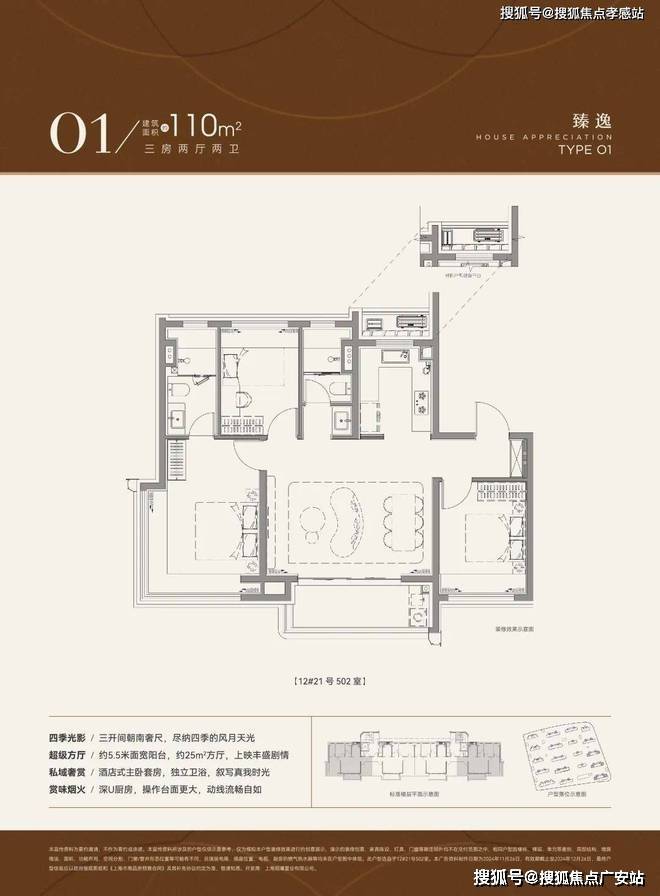 110户型大横厅+约5.5米面宽的阳台,尺度感不错。