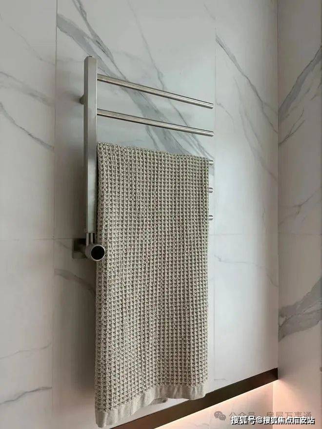入户玄关处的地面,大理石地面搭配金属线条勾勒出玄关地界,归家的氛围感从这个区域就开始了~这还不是重点,玄关座椅背后,是一面皮革包裹的墙面。鞋柜下方做了悬浮处理,同样也是内嵌灯带,这里灯光的角度还会再调整,因为灯光映射在大理石地面上,要显得尽量柔和不刺眼;同时,鞋柜下方可放拖鞋,还能放扫地机器人,便于日常清扫打理。鞋柜的饰面,纹路方向统一,呈现出极强的协调感。橱柜作为强功能性的收纳系统,自然少不了操作性能上的考究,吊柜做了升降式的拉篮,以后再也不用爬上高凳拿取了。下方的橱柜则做了转角拉篮,充分利用转角空间,使物品井然有序的同时,轻松方便取放。水槽也是一个大单槽,放得下炒锅汤锅这种大物件~抽拉式龙头,清洗大水槽的时候很方便,360度旋转伸展自如,这款弯管还是硅胶材质,柔软耐用有弹性,还可切换出水模式,出来的水柱也是很柔和细腻不飞溅。厨房玻璃门是上轨道移门,意味着地面部分没有任何轨道,不会有灰尘积攒,炒菜时关上,避免油烟散入室内;平时拉开,可以扩充室内视觉感受。卫浴缦云上海所有户型的所有卫生间里都用了悬浮式的洁具和柜体,确保了下方空间的打扫无死角,对未来的入住带来非常大的便利性!吉博力同层排水技术,静音是最大亮点;特制“水母”地漏,多重防臭防反溢。干净舒适的卫生间,是从空气到水流的全面把控~你们可以看下缦云上海是如何处理卫生间木门的防潮的——卫生间一侧用大理石做踢脚线,这是真正细致入微的巧思!主卧卫生间配备的电热毛巾架简直就是遇到潮冷节气的“福音”,让毛巾、内衣都能够提前加热干燥。层高对于缦云上海的纯大宅社区定位,能买这样产品的购房者会非常在意空间感。缦云上海全部户型层高约3.3米,室内所有空间的门都做了通顶设计,更阔绰的居室空间,将生活格局有效放大,通风、采光和观景体验的全方位提升!弧形元素缦云上海样板间里随处可见柔和的圆弧修饰,特别是柜体、墙体包边的圆弧转角,在进出各个空间时,减少磕碰的风险,对于有孩子和老人的家庭来说,是非常实用的友好设计。而且,门套做了弧形设计后,还叠加了金属线与墙纸做了分割,加强隔断界限感,提升室内家居精致度~比起中规中矩的直线,弧形施工工艺更复杂、造价更高,却多了几分灵动轻盈!这种弧形的元素不只是在样板间里,在售楼处也能经常看到,比如电梯厅。