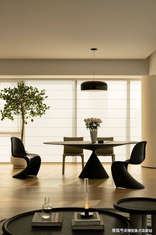 作为入户第一幕,玄关以极简姿态开启生活叙事,素净墙面如天然画布。清透支架托举着素白花瓶,植物姿态俏皮延展,成为连接户外与生活的温柔过渡。