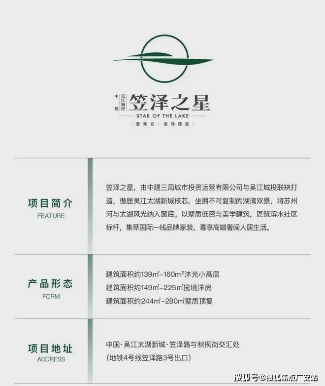 笠泽之星位于苏州吴江太湖新城,由中建和吴江城投联合开发,提供洋房和小高层住宅,主力户型面积在139至280平方米之间