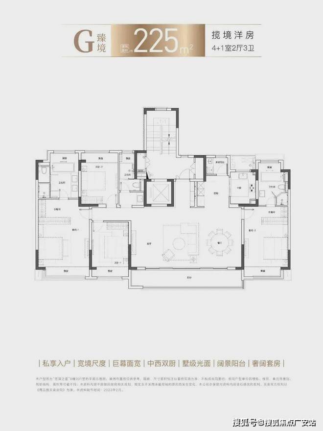 建面约205㎡洋房新品,央景楼座,俯瞰一园精粹。约20米南向五开间、约8.1米巨幕横厅、双奢适套房主卧、中西双厨,处处彰显豪阔领域。因市场罕有的宽境尺度、高阶的精工标准、纯粹低密的观景视野,成为本次加推的明星户型。