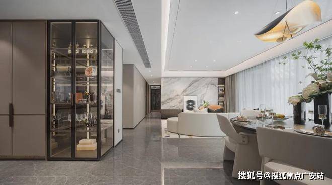 厨房门更换为玻璃材质,贯通南北采光,光线在客厅、餐厅与水吧间自由流淌。通透隔断打破空间阻隔,让生活动区成为家人随时互动交流的温馨场域,实现功能性与舒适性的完美平衡。
