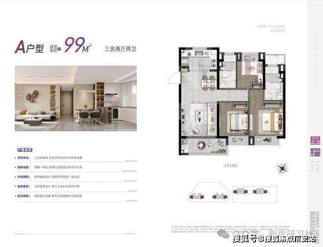 户型与价格:88-99㎡精装三房,均价约4.2万/㎡,总价300万起