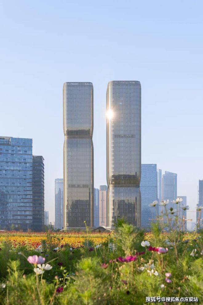 由英国Aedas建筑事务所设计,以西湖"藕节"为灵感打造150米超高层双塔,与亚运"莲花碗"形成"双莲并序"的视觉符号,外立面采用古铜色铝板与玻璃幕墙交叠,获CTBUH2024全球最佳高层建筑奖