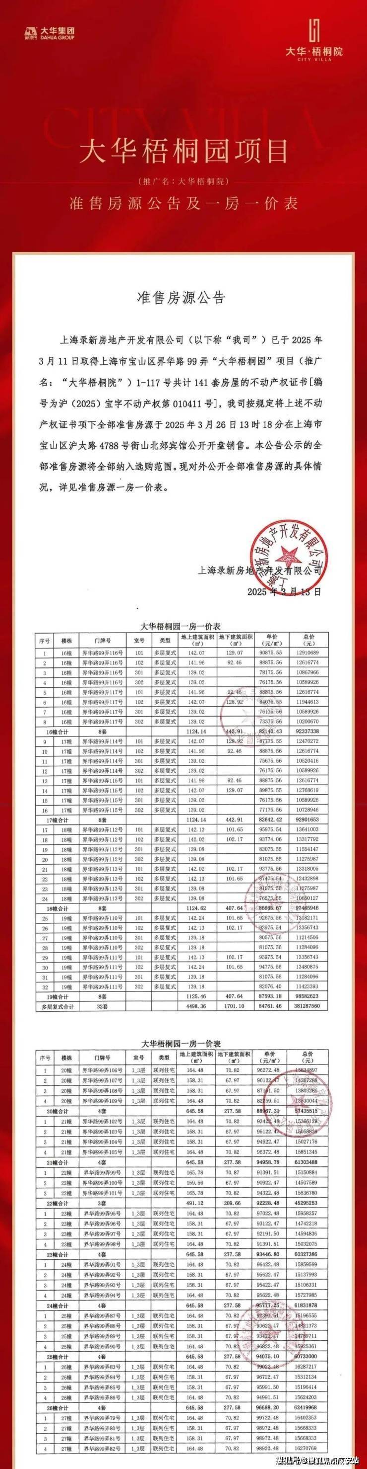 据悉,【大华梧桐院】将推约139-142㎡叠加别墅、158-165㎡联排别墅,总计141套,均价91800元/㎡,正在认购中!