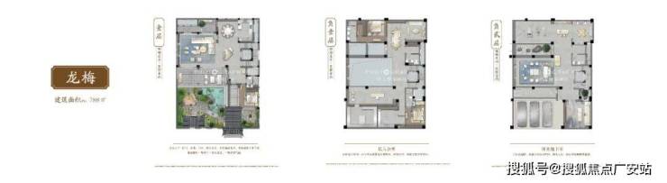 园内布局五进制南北主轴、以及“双龙戏水”格局的双水街,巷道联通,设七大景观组团,形成“一环、两轴、七境”布局。175席中式园宅,依巷分布南北,横平竖直,秩序井然。