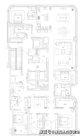 私密场域依旧保持静谧,黑白色基础上搭配了更多的色彩,例如深棕、浅紫等,艺术品的衬托深邃迷人,热络了家的氛围。
