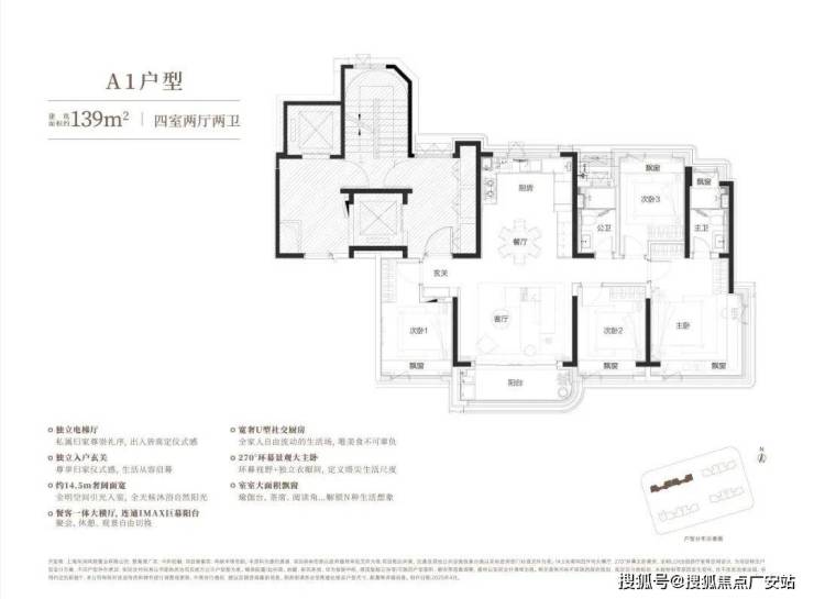 建面约139㎡四房户型,更是形成"阳光平权"的居住体验。