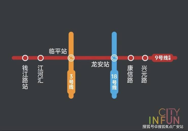 项目横跨地铁9号线兴元路站(在建)、康信路站(在建)两大站点,以轨道打破壁垒,一条地铁直达钱江新城、城东新城、滨江、西湖等高能区域,更高效的日常通勤外,还能享受到一脉市心的生活配套。
