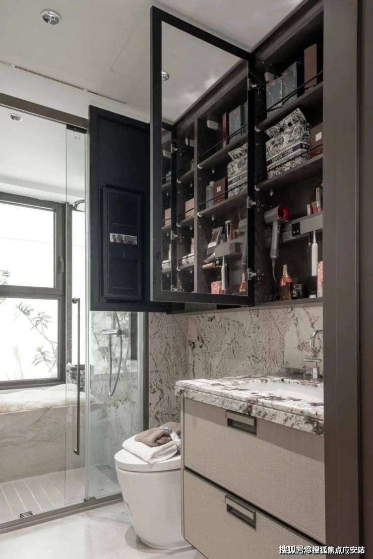 小户型最让人担心的小户型的收纳问题招商序给出了自己的解题思路,让我们看看它的收纳空间,首先是一整排的玄关收纳,玄关柜据说可以放下28双高筒靴,而且是大理石的台面石,另一侧的储物柜是一个容量较大的落地柜,足够收纳一个大行李箱,背面还贴心设置了洞洞板,可以悬挂雨伞、包包等物品,整个玄关柜是天然木皮鸡翅木包裹,非常高级,预留S墙的设计轻松收置双开门冰箱、厨房与卫生间采用了模块化的收纳系统,通过碗碟拉篮、谷物抽、不锈钢开架,贯穿式镜柜与美妆冰箱等收纳道具,将日常用品归置的仅仅有条,114主卧更是预留了超大的衣柜空间。