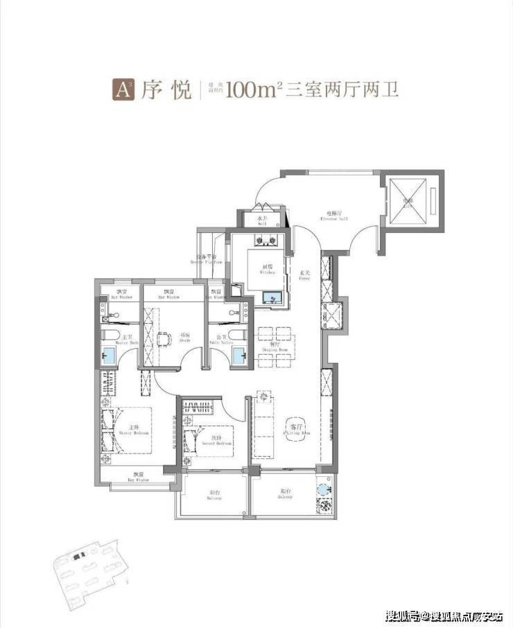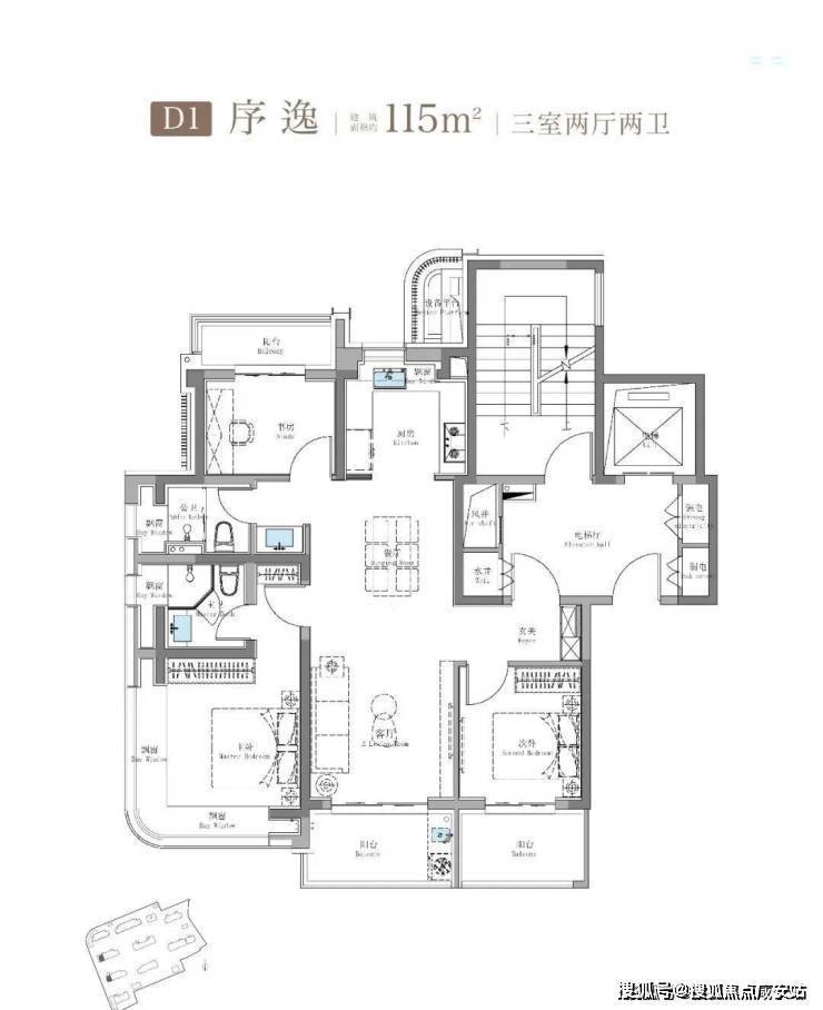 建面约115㎡3房2卫只有二期才会有
