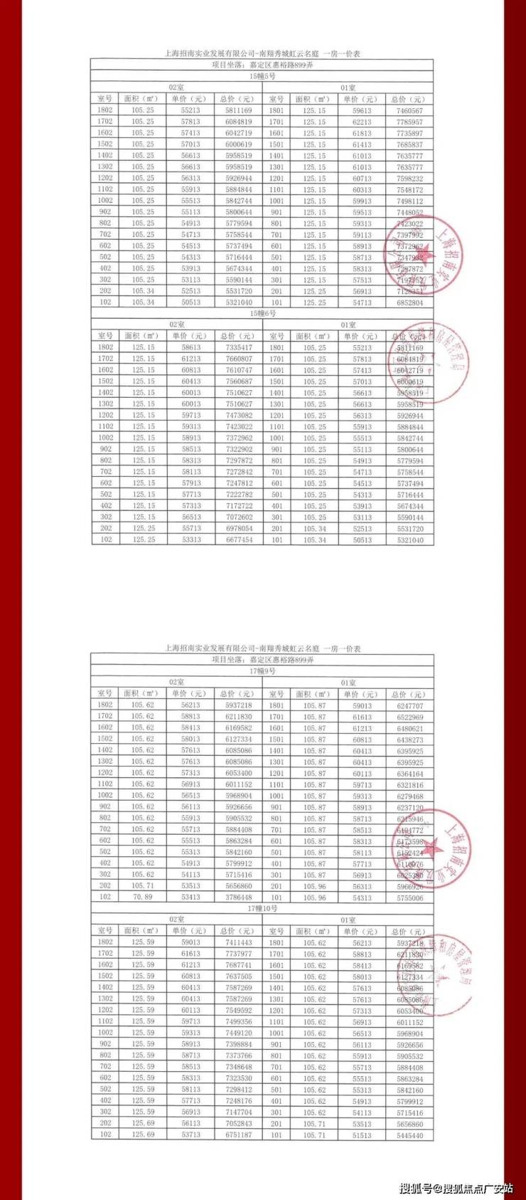 项目一房一价表