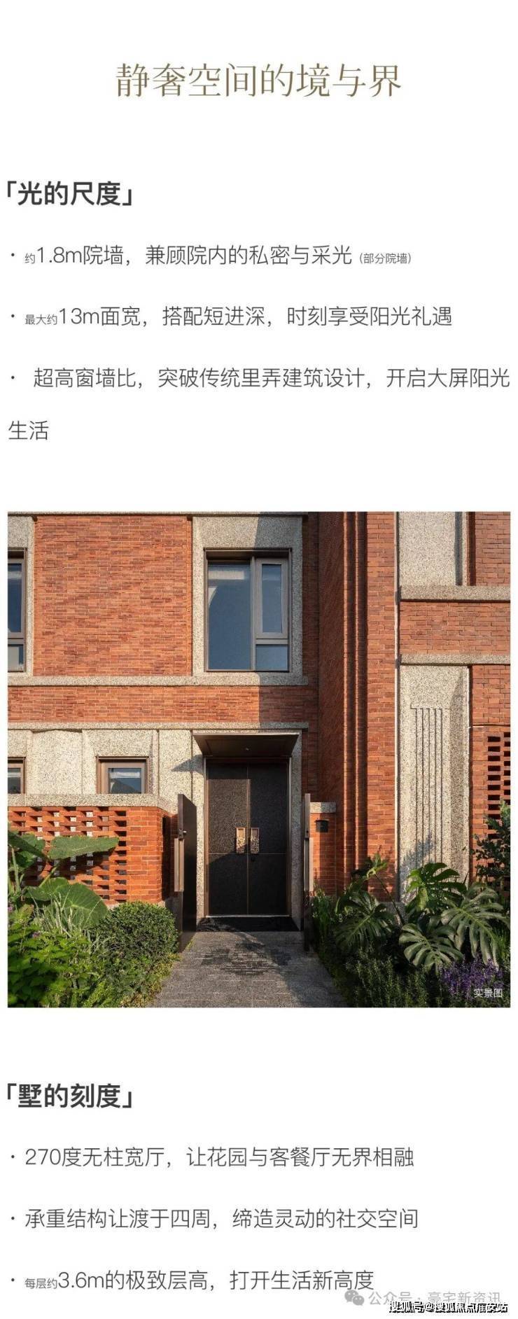 「开阔尺度」:约3.6米层高、超大窗墙比等花园里弄的尺度突破,尽显居者风度。