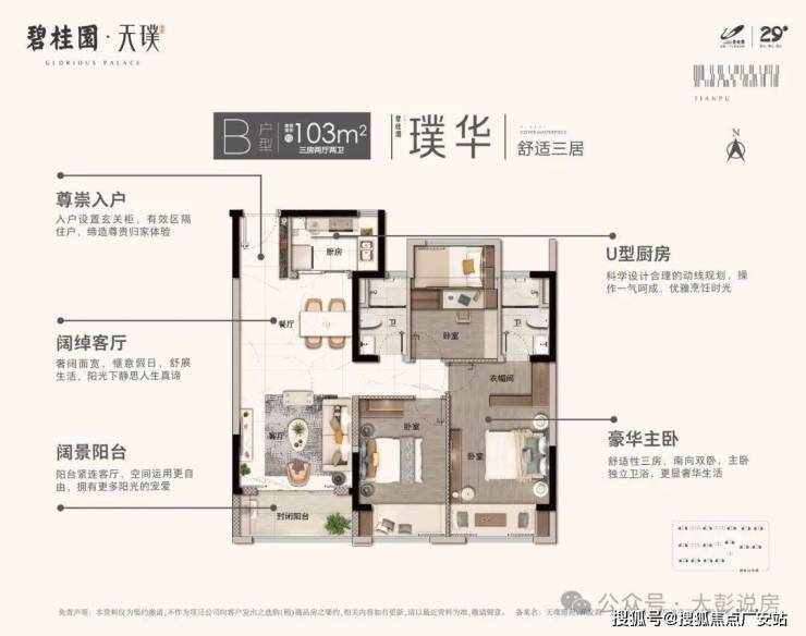 【璞华B户型 】‼建筑面积约103㎡‼