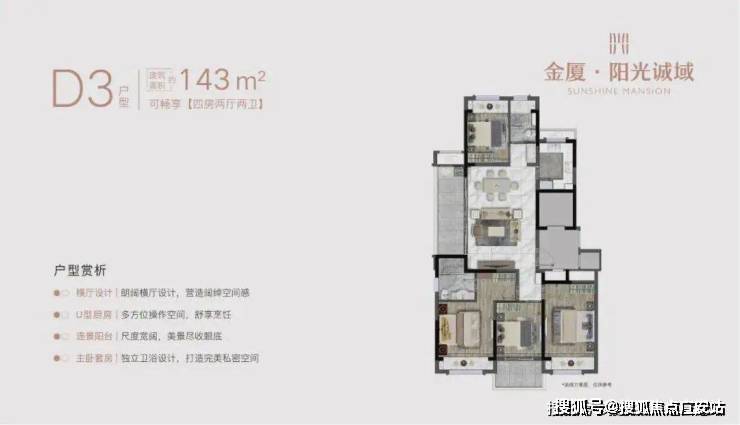 户型面积:103㎡(三室)、125㎡(四室)、138㎡(四室)、143㎡(四室)